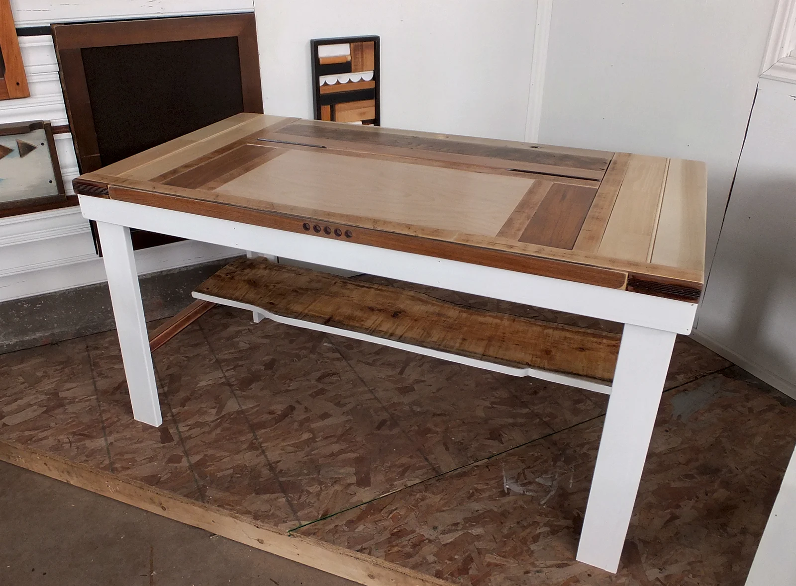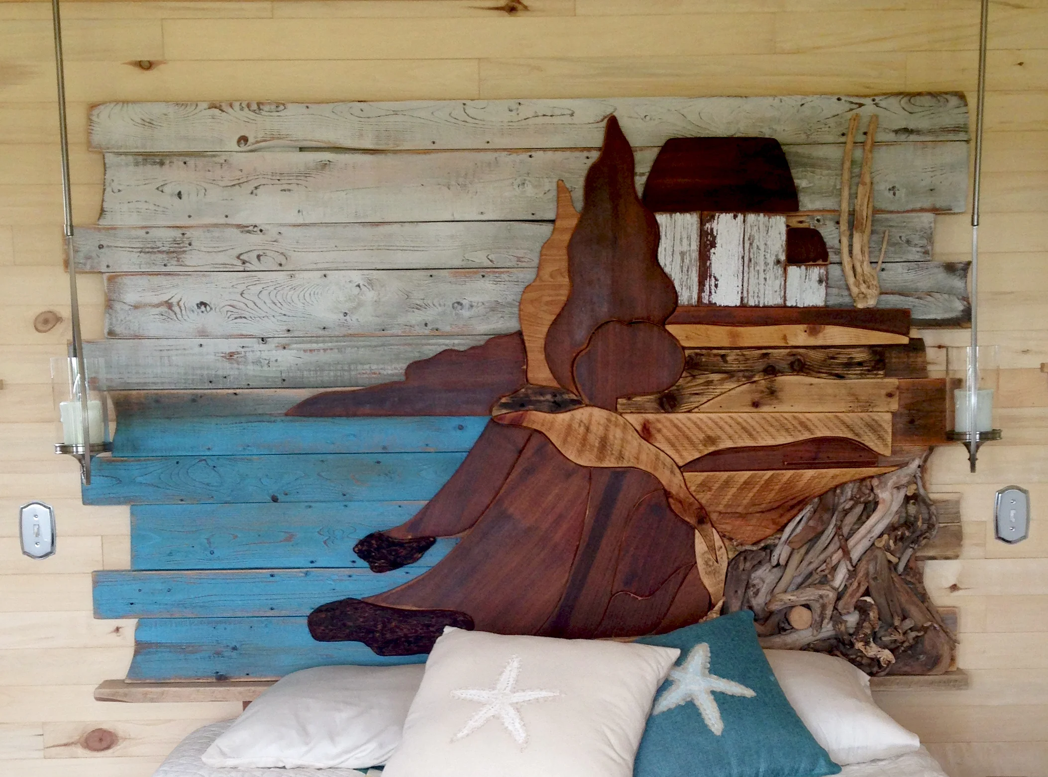 Artwork is a more recent addition to our reclaimed wood repertoire. It took a more sophisticated turn this year which you can read about here.