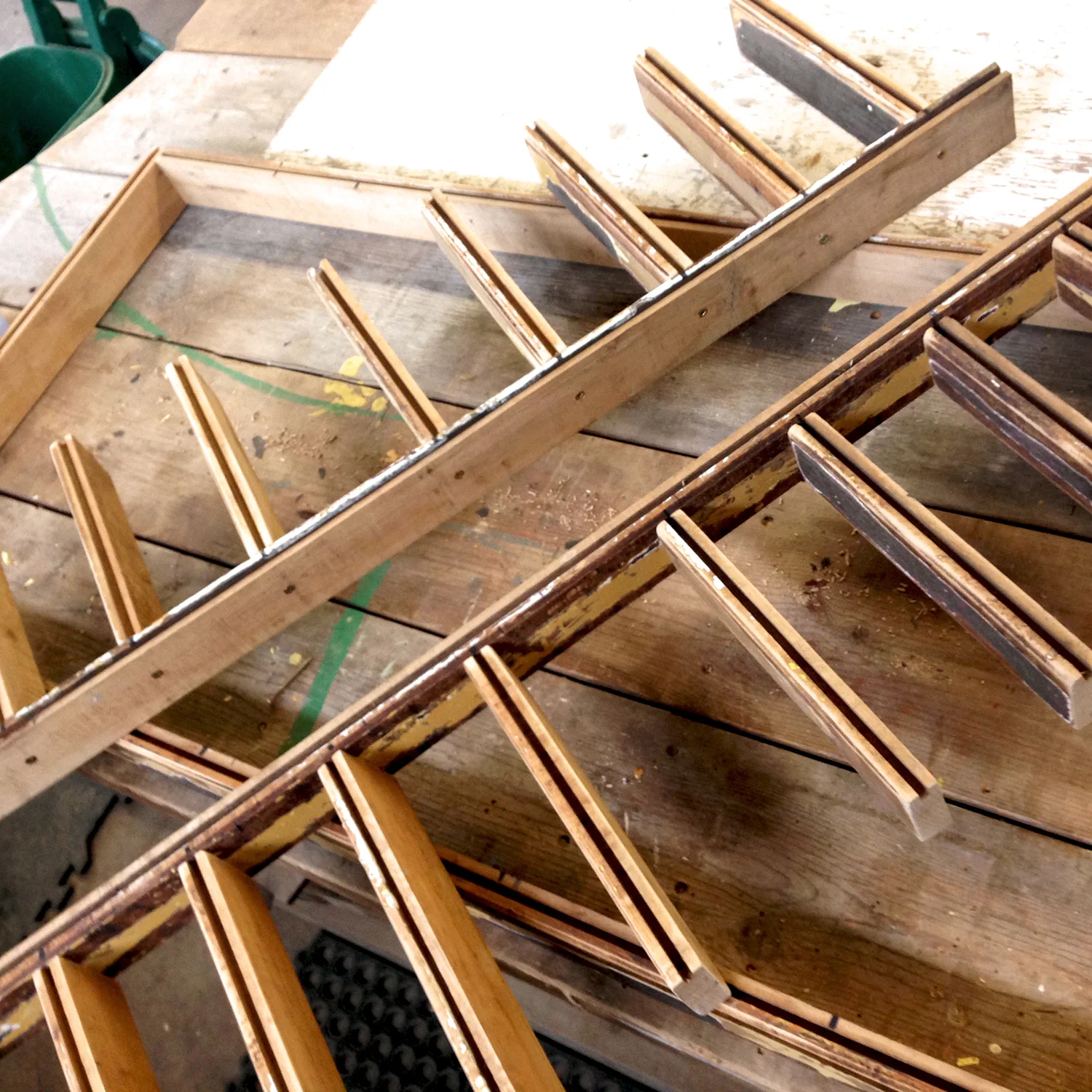 When we purchased our workshop and property in 2013, it included an abandoned community hockey rink. The rink collapsed on us in 2014 and has been a huge source of wood for the things we build. This display case was no exception. Below is a side board that was used for the backing - complete with puck marks!