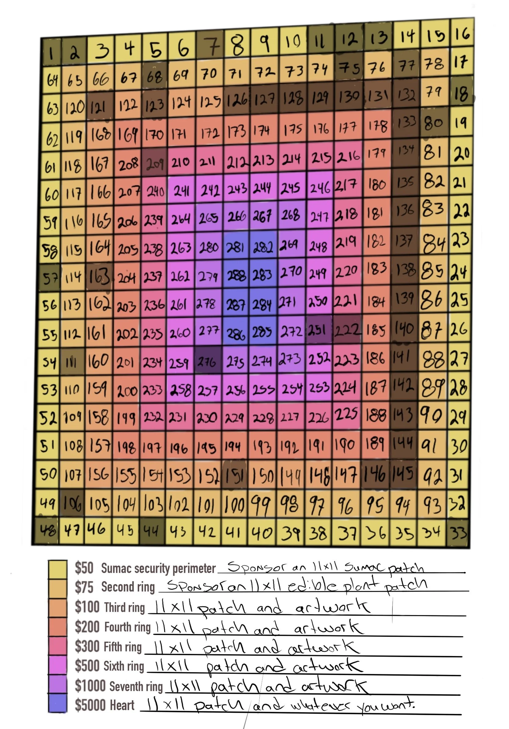 Now onto the land protection act. OK since I began this project I have been very productive. My home gallery is full of new pieces some of which are already on the website. I have also listed the different plots on the website now so you can purchase them on there. Just scroll down in the drop-down menu to quirkshop and the options are there. You can sponsor a piece of land in the outer two rings and I'll plant something for you there. Or you can sponsor the plots on the inner rings and receive a piece of my artwork. Please see below image for available plot options (242 plots remain). As I am still working to keep my head above water I haven't begun the building/planting process but I'm very much happily swimming toward that end. The time it takes is not my concern. Again thank you for the support I've already received as it is what has enabled me to get to this more clear and peaceful place.
